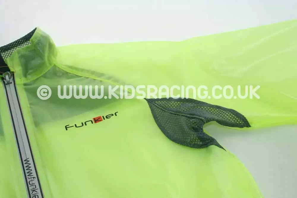 Young cyclists and Triathletes are keen to show the team colours when competing, but when the need arises to wear a jacket, the team identity disappears. Most clubs don’t supply a customer jacket due to high costs – so the clear Funkier Race Cape is a great solution.