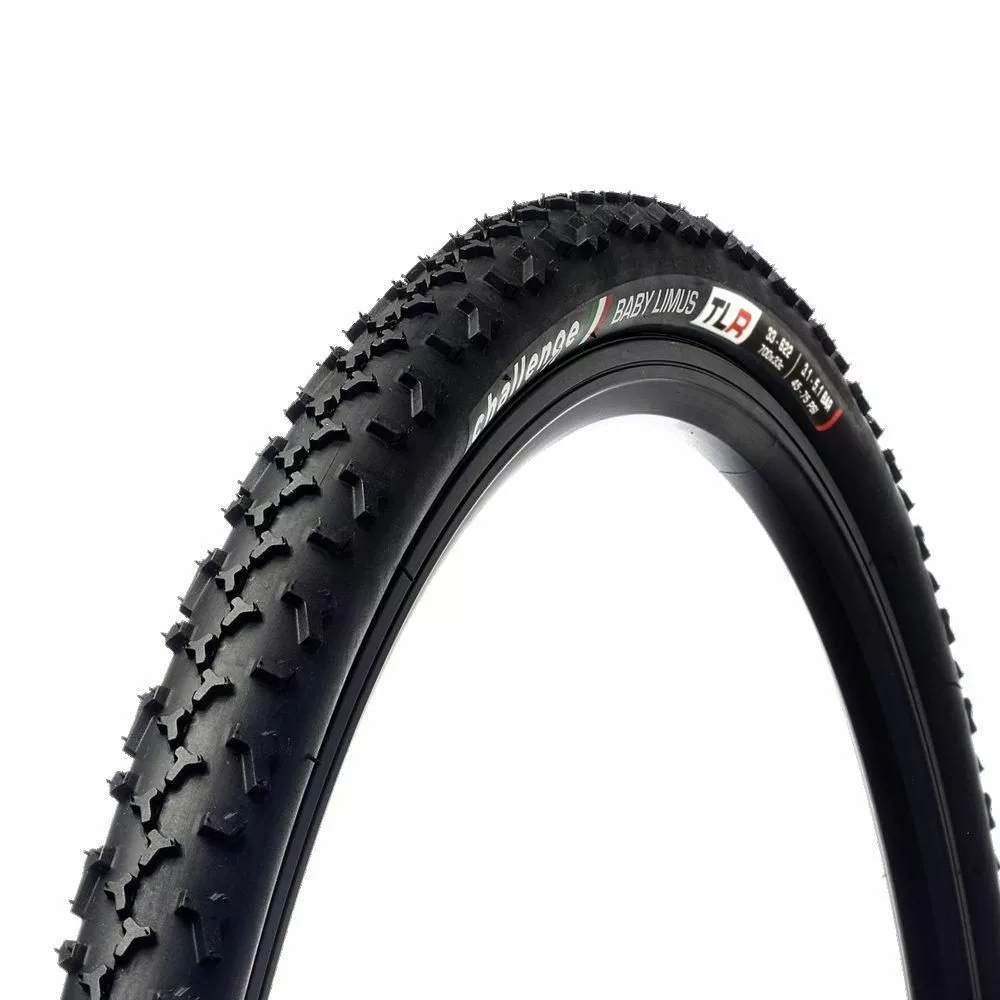 Challenge Baby Limus Cyclocross Tyre 700c x 33c (Black) – the new all-around Cyclocross tyre excels in wet sand or sticky mud or dry, fast, packed courses – it’s a superb, lightweight all-round tyre perfect for youth CX or grass course junior Triathlon.