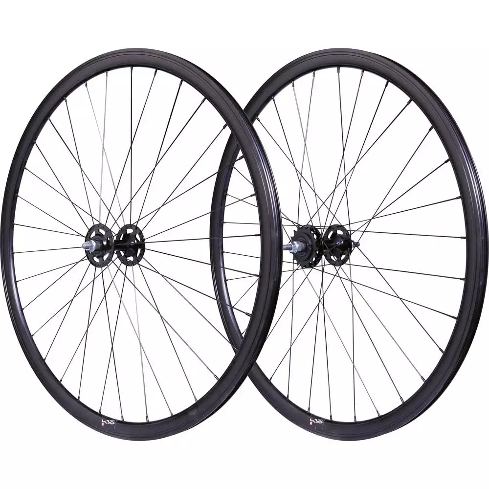 They have a double thread on the large-flange hub that can be used for either a fixed sprocket or freewheel, so they offer great versatility. Cross spoke lacing on both the front and rear wheels ensures rigidity and resistance, while the all black finish provides a distinctive ‘street’ look and feel.
